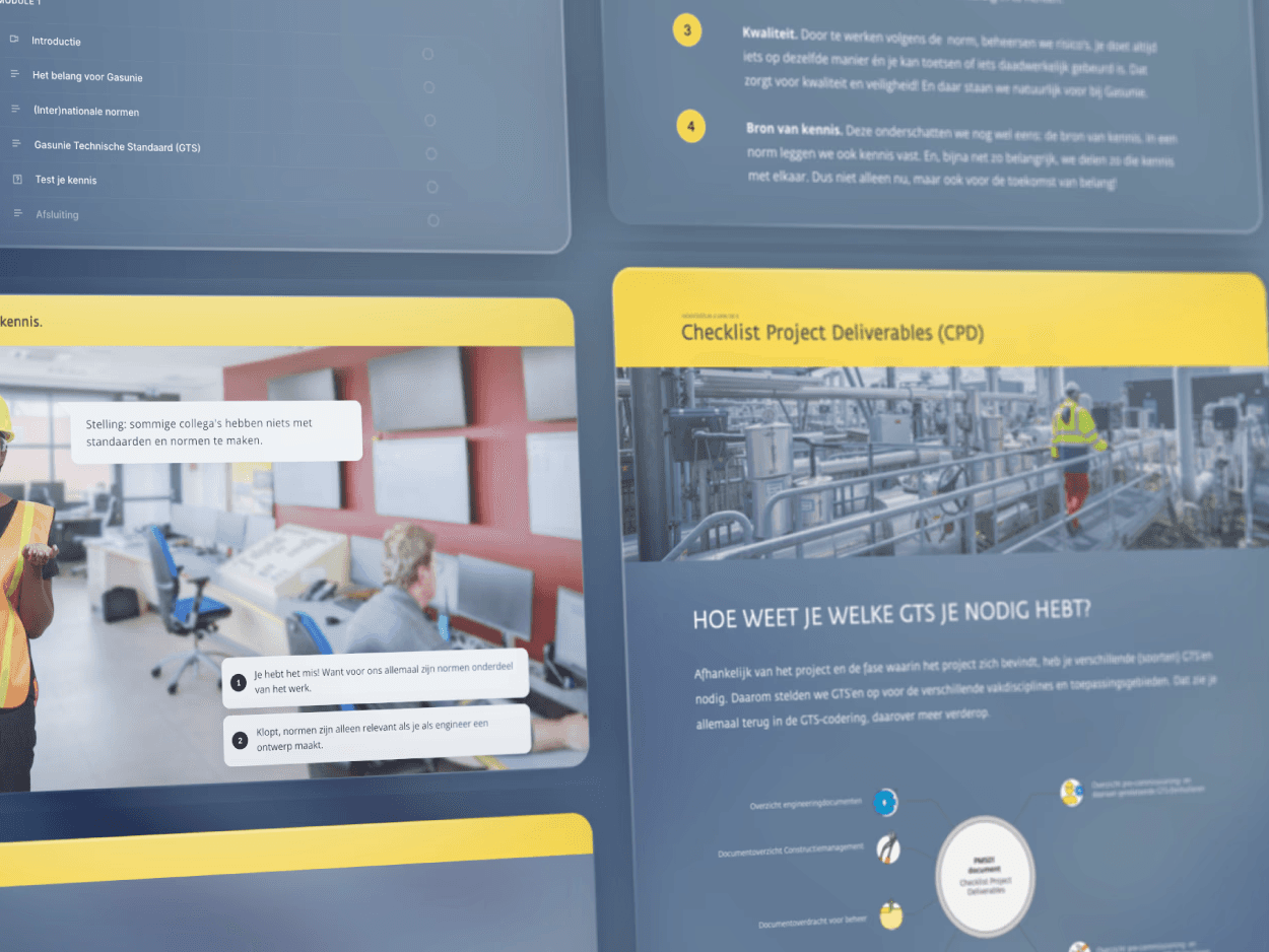 Als je ons vraagt een e-learning te ontwikkelen, kiezen we voor een combinatie van interactieve video, infographics zoals heatmaps, gamification en animaties. Dit geeft ons de kans om een aantrekkelijke e-learning te maken, die niet alleen nuttig is voor de cursisten, maar ook leuk om te volgen.